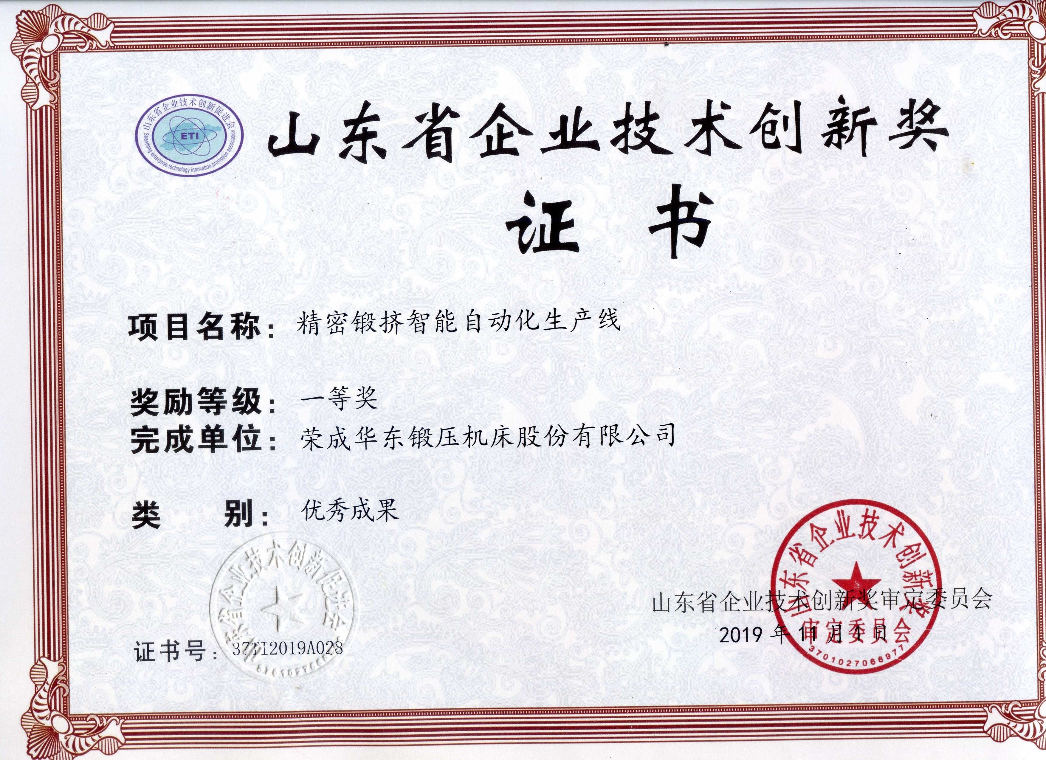 山東省企業(yè)技術(shù)創(chuàng)新獎-大型高速機(jī)械壓力機(jī)自動化線